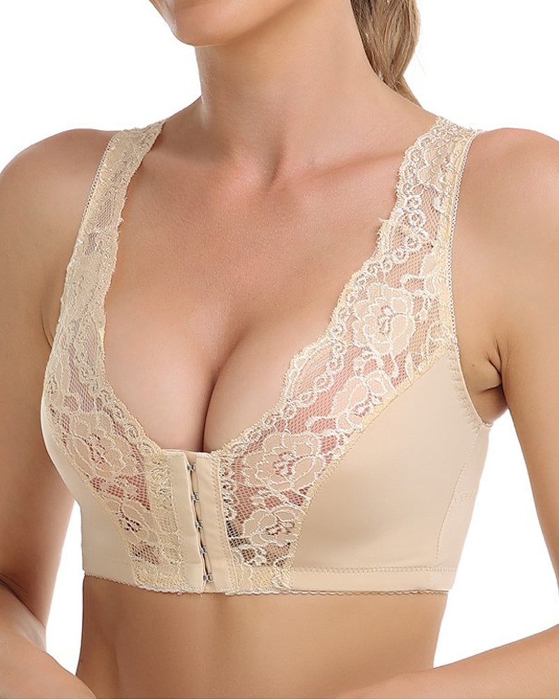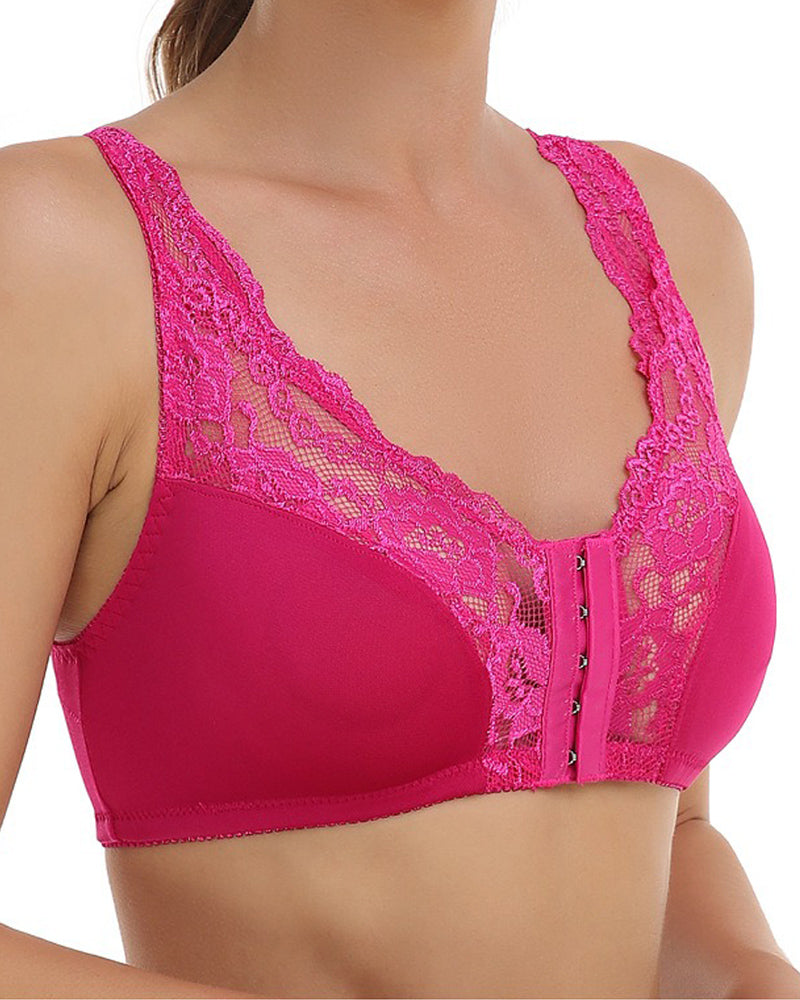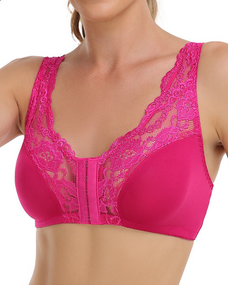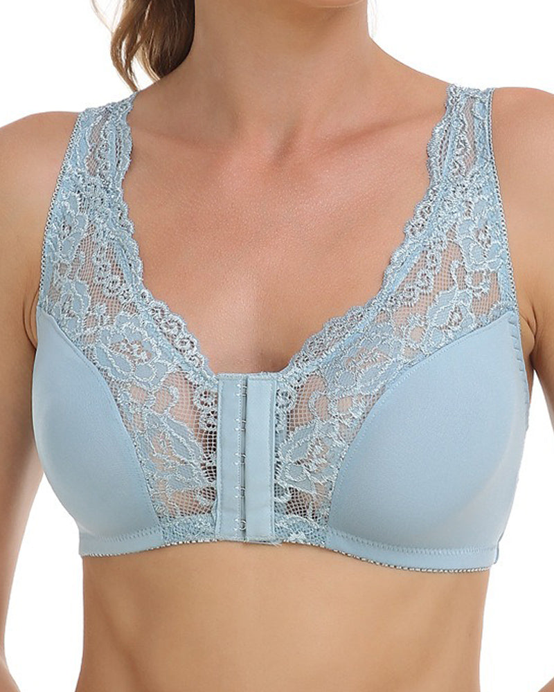 Atmungsaktiver Bügelloser Formender BH mit Spitzenverschluss vorne und Glattem Rücke