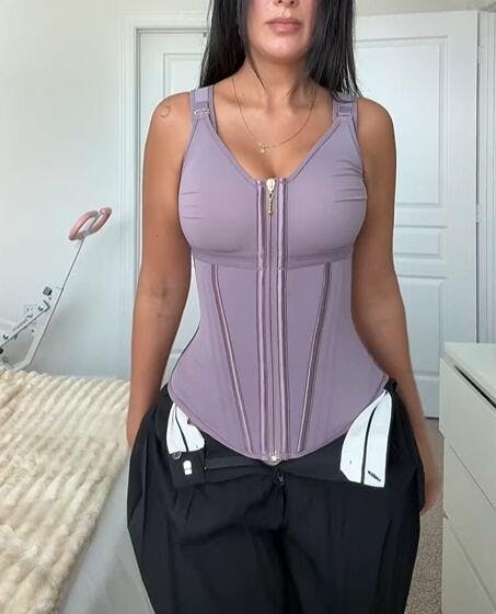 Shapshe® Damen Stäbchen Latex Reißverschluss Korsett Bauchkontrolle Body Shaper Weste Mit BH