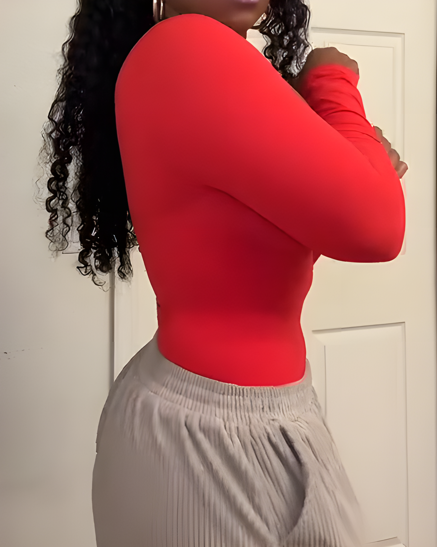 Dieser Body mit langen Ärmeln betont die Armlinie, unterstreicht elegantes Temperament und setzt modische Akzente. Das einzigartige nahtlose Design sorgt für ein glattes, faltenfreies Tragegefühl und betont perfekte Kurven!