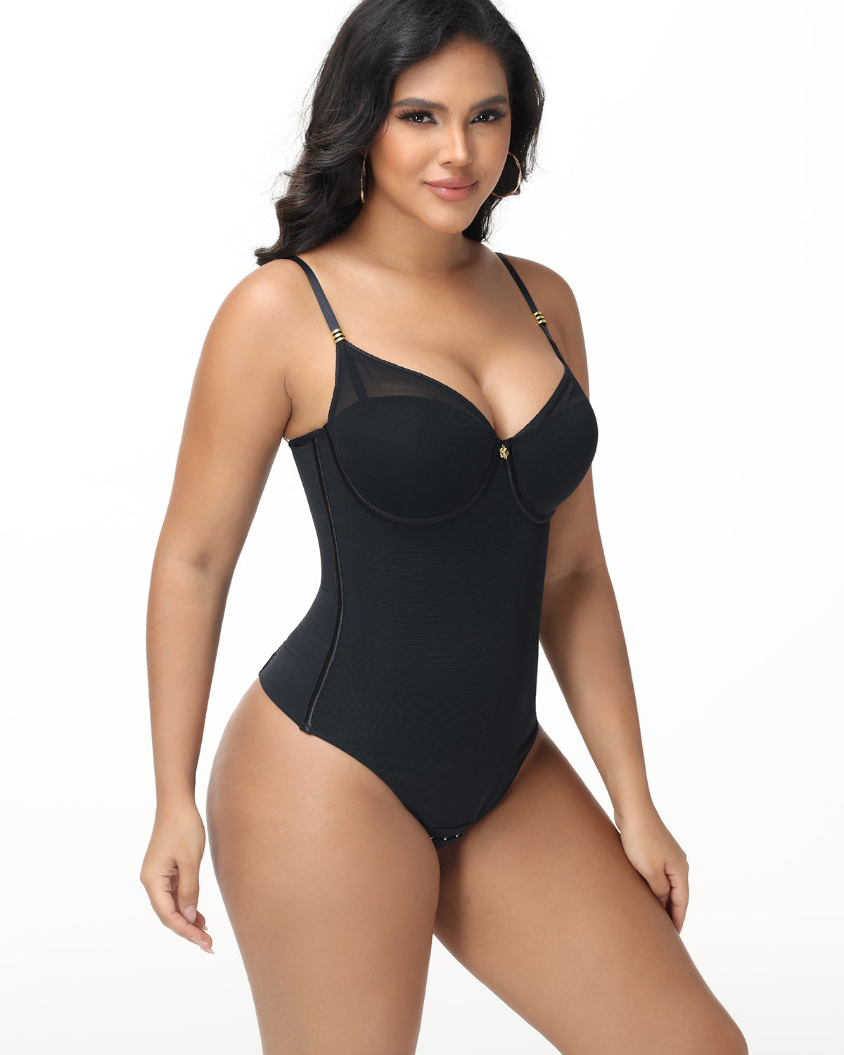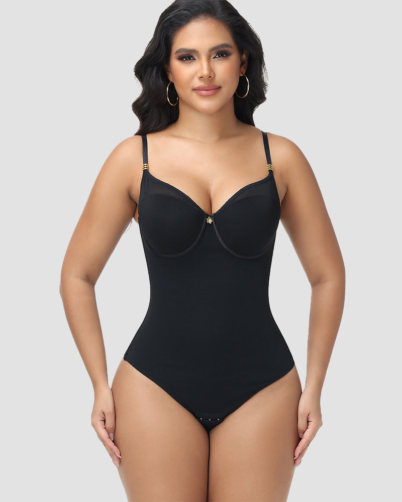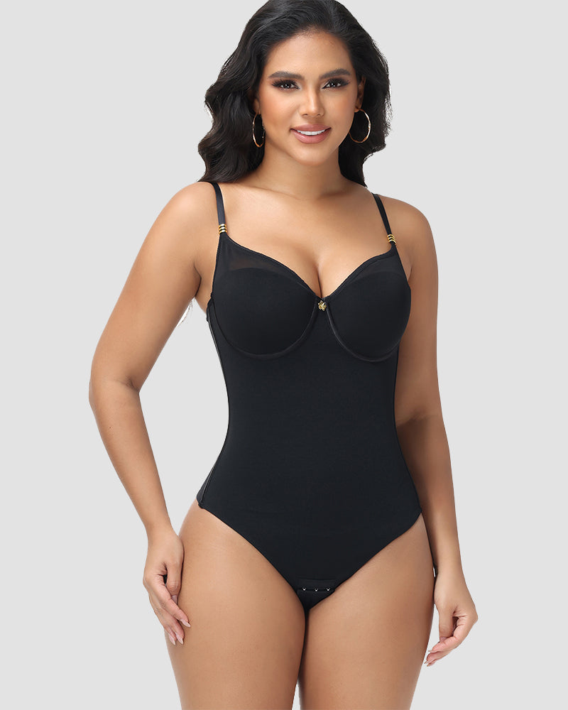 Verleihen Sie Ihrer Shapewear mit diesem Bodysuit mit integriertem BH und Schnürung am Rücken ein neues Level – eine elegante Kombination aus gezielter Bauchkontrolle, stützendem Design und luxuriösen goldenen Details.