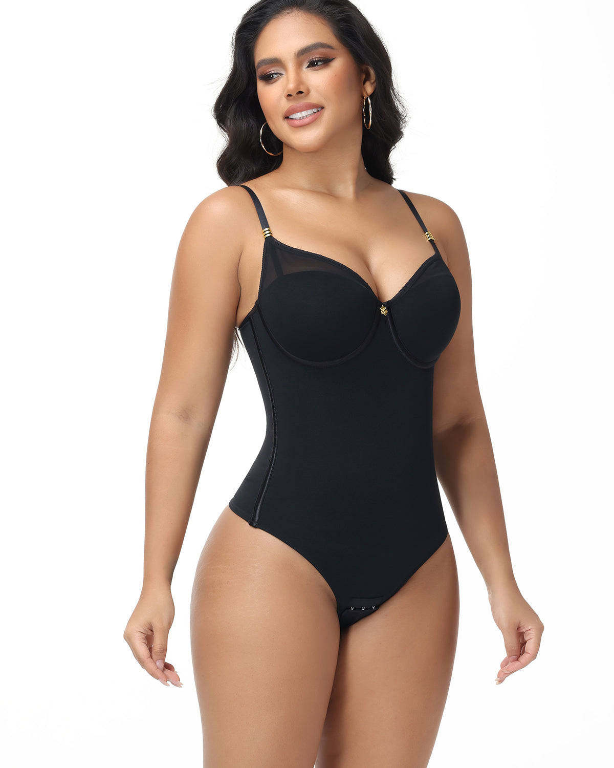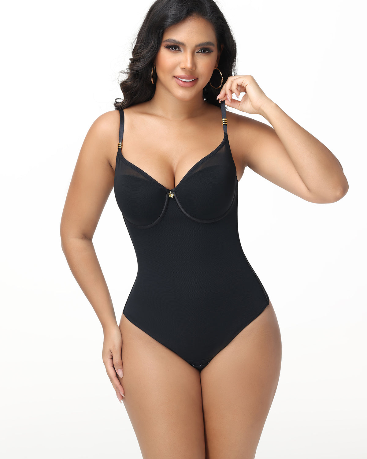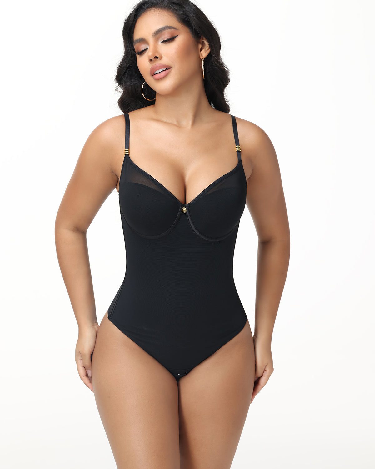 Verleihen Sie Ihrer Shapewear mit diesem Bodysuit mit integriertem BH und Schnürung am Rücken ein neues Level – eine elegante Kombination aus gezielter Bauchkontrolle, stützendem Design und luxuriösen goldenen Details.