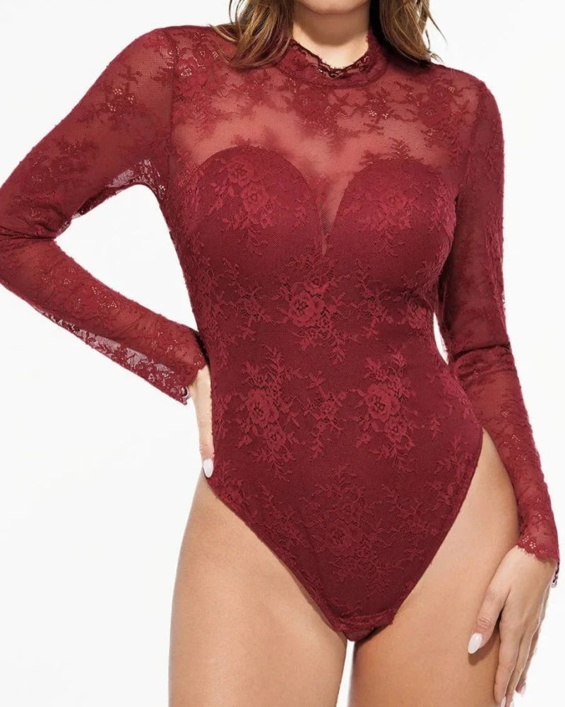 Sexy Spitzen Shapewear Body mit Langen Ärmeln und Durchsichtigem Mesh (Vorverkauf)