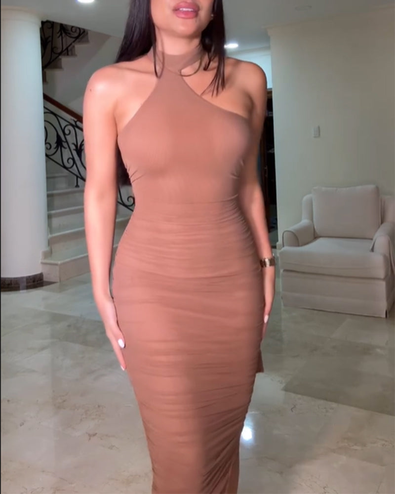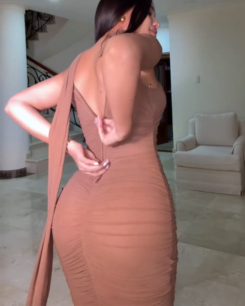 Betonen Sie Ihre Kurven im figurbetonten Maxikleid mit Raffungen – ein schickes und raffiniertes Design, das sinnliche Ausstrahlung mit zeitloser Eleganz vereint. Die figurbetonte Silhouette und die Raffungen zaubern eine schmeichelhafte Silhouette, während der sexy Bindegürtel am Rücken für einen verspielten und zugleich raffinierten Touch sorgt. Ob für einen Abend in der Stadt, ein formelles Dinner oder einen besonderen Anlass – dieses Maxikleid ist ein Must-have für jede modebewusste Frau.