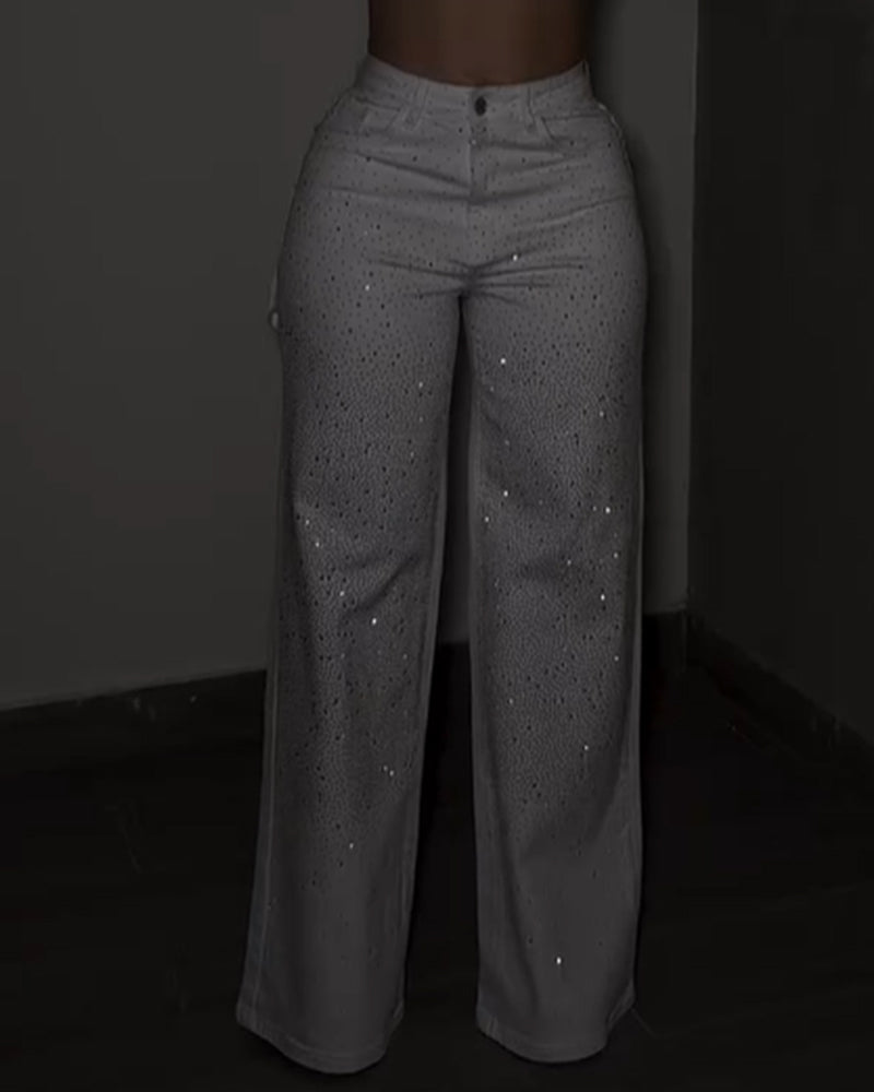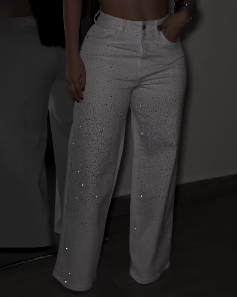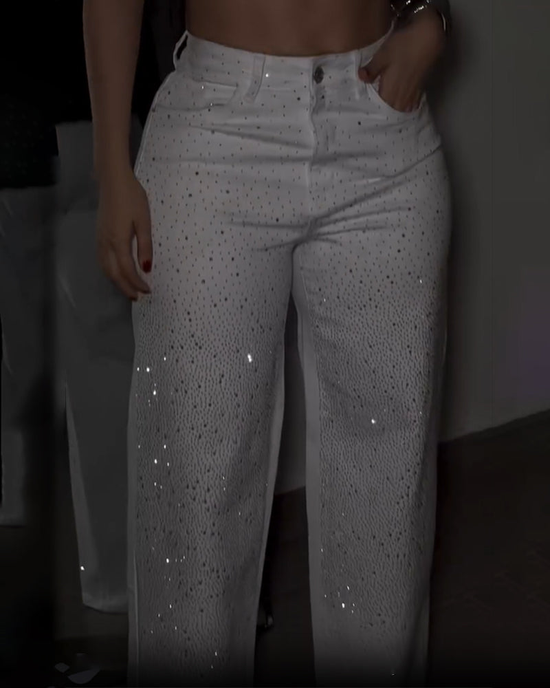 Glitzernde Strass Jeans mit Hohem Bund (Vorverkauf)
