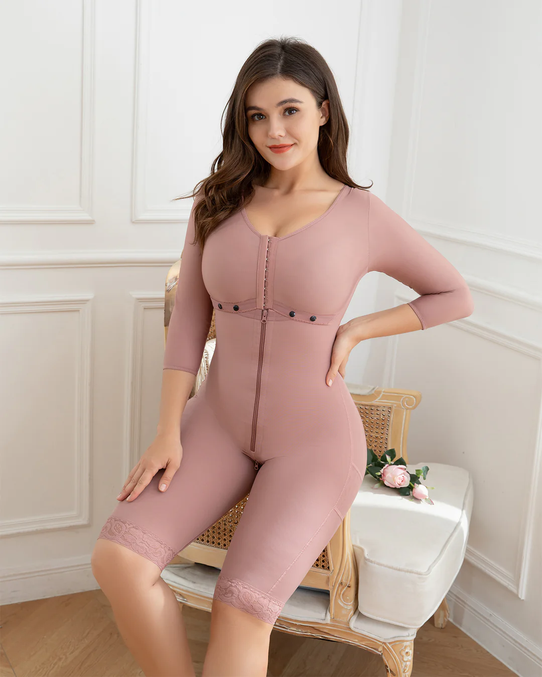 Shapshe® Fajas Beige Sanduhr-Shapewear für Damen. Mit Ärmeln und BH