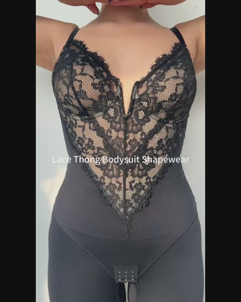 Shapshe® Sexy Plunge Lace Shapewear Bodysuit with Hook Crotch